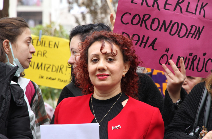Biz kadınlar her gün daha fazla tehdit altında, her gün daha tedirgin yaşamaya çalışırken bizleri koruyan mekanizmalara göz dikenlerin amacını biliyoruz. Kadınlar şiddet karşısında yalnızlaşmayacak, boyun eğip ‘kader’ diyerek şiddeti kabullenmeyecek, kendine dayatılan hayatla yetinmeyecek. Kadına yönelik şiddete karşı gittikçe derinleşen cezasızlık politikasına, siyasi iktidarın şiddeti körükleyen şiddet diline inat İstanbul sözleşmesine sahip çıkmaya devam ediyoruz, barış dilini kullanmaya devam edeceğiz” diye konuştu.
