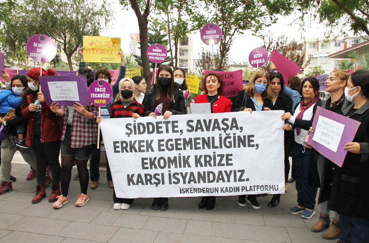 Kadın Platformu adına açıklamayı, Dönem Sözcüsü Filiz Yeşildağ yaptı. Türkiye’de, 2021’in ilk 10 ayında 326 kadın öldürüldüğünü, Ekim ayında ise bilinen 22 kadın cinayeti yaşandığını, 53 kadının şiddete uğradığı için şikâyette bulunduğunu, 9 kadının cinsel şiddete uğradığını, 280 kadının ise taciz edildiğini kaydeden Yeşildağ; “Şiddetle mücadelede etkin rol alması gereken siyasi iktidar, kadın cinayetleri bir cins kırımına yol açmasına rağmen hiçbir önlem almıyor. Üstelik toplumun her kesimini şiddetten koruyacak en kapsamlı uluslararası antlaşma olan İstanbul Sözleşmesinden çekilme kararı aldı. Kadına yönelik şiddetin münferit değil politik olduğunu biliyoruz. Şiddetin önlenmesi için iktidarların alması gereken sorumluluğun farkındayız.