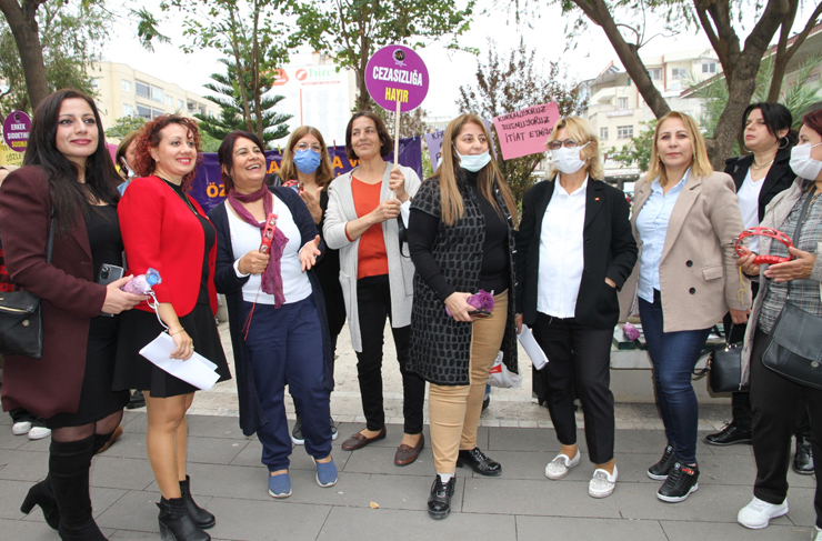 Biz kadınlar her gün daha fazla tehdit altında, her gün daha tedirgin yaşamaya çalışırken bizleri koruyan mekanizmalara göz dikenlerin amacını biliyoruz. Kadınlar şiddet karşısında yalnızlaşmayacak, boyun eğip ‘kader’ diyerek şiddeti kabullenmeyecek, kendine dayatılan hayatla yetinmeyecek. Kadına yönelik şiddete karşı gittikçe derinleşen cezasızlık politikasına, siyasi iktidarın şiddeti körükleyen şiddet diline inat İstanbul sözleşmesine sahip çıkmaya devam ediyoruz, barış dilini kullanmaya devam edeceğiz” diye konuştu.