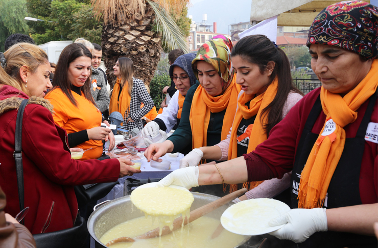 Kermes öncesinde 7’den 70’e herkes Hatay Büyükşehir Belediyesi Bando Takımı eşliğinde Antakya Atatürk Parkı’nda ‘Kadına Şiddete Hayır’ yürüyüşüne katıldı.