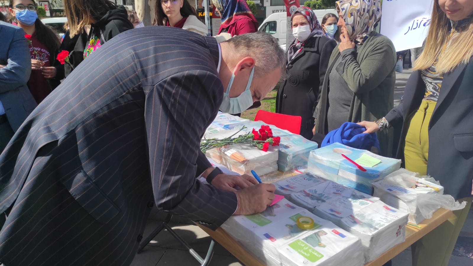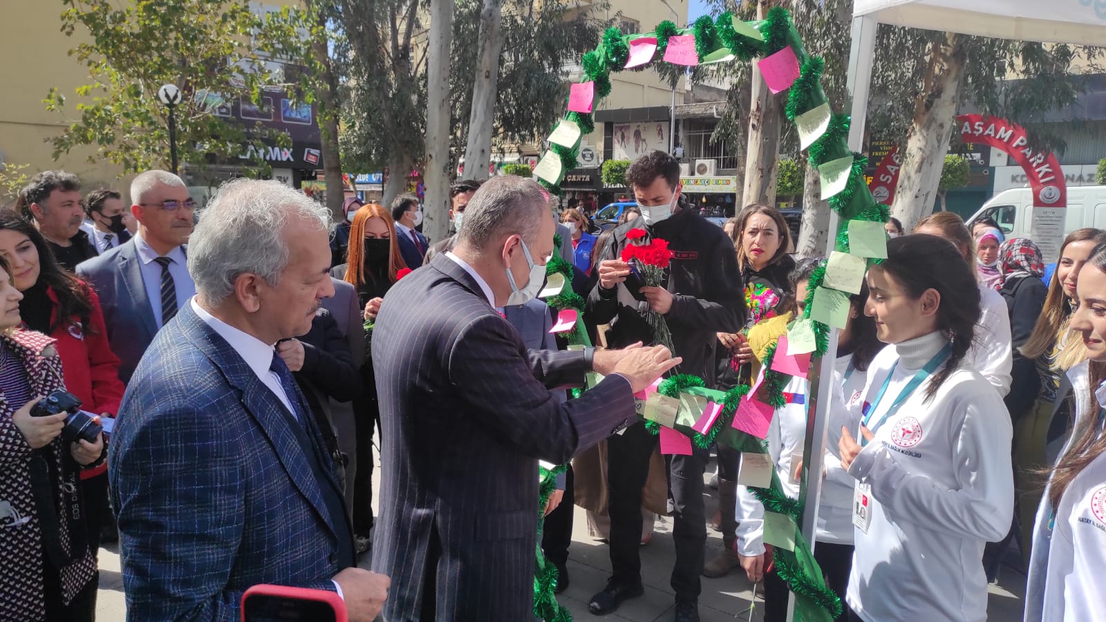 Kaymakam Yönden ve Başkan Tosyalı da, düşünce ve temennilerini kağıtlara yazarak Hayat Ağacına astılar. Ardından sağlıkçı kadınlara da karanfil dağıtarak 8 Mart Dünya Emekçi Kadınlar Günlerini kutladılar. (Haber: Helga TERBİYELİ)