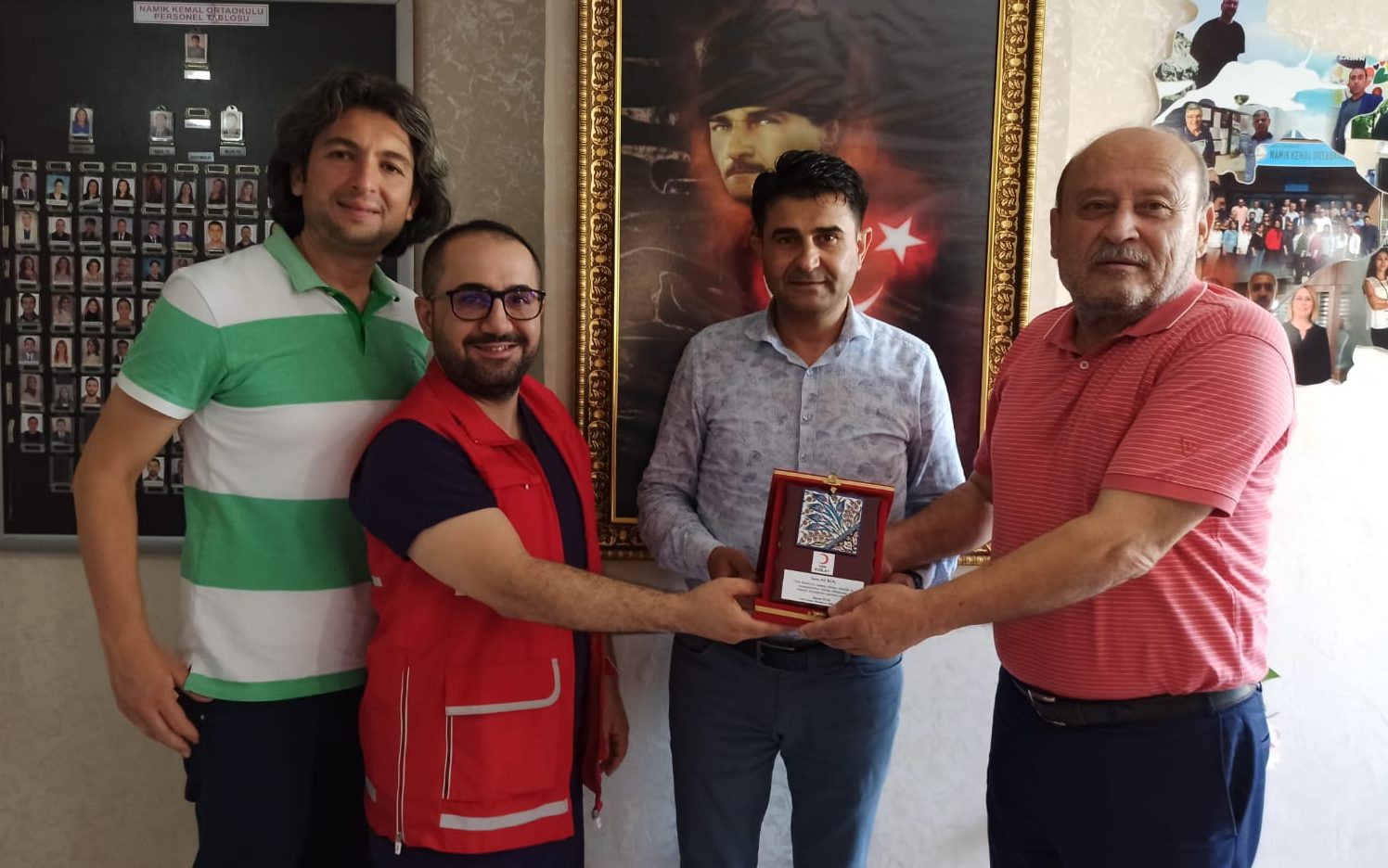 Kızılay Derneği İskenderun Şubesi ve Kızılay Kan Merkezi tarafından, 2021-2022 yılının son gününde, düzenlediği kampanyalar ile kan bağışına verdiği destekten ötürü Namık Kemal Ortaokulu Müdürü Ali Koç’a plaket takdim edildi.