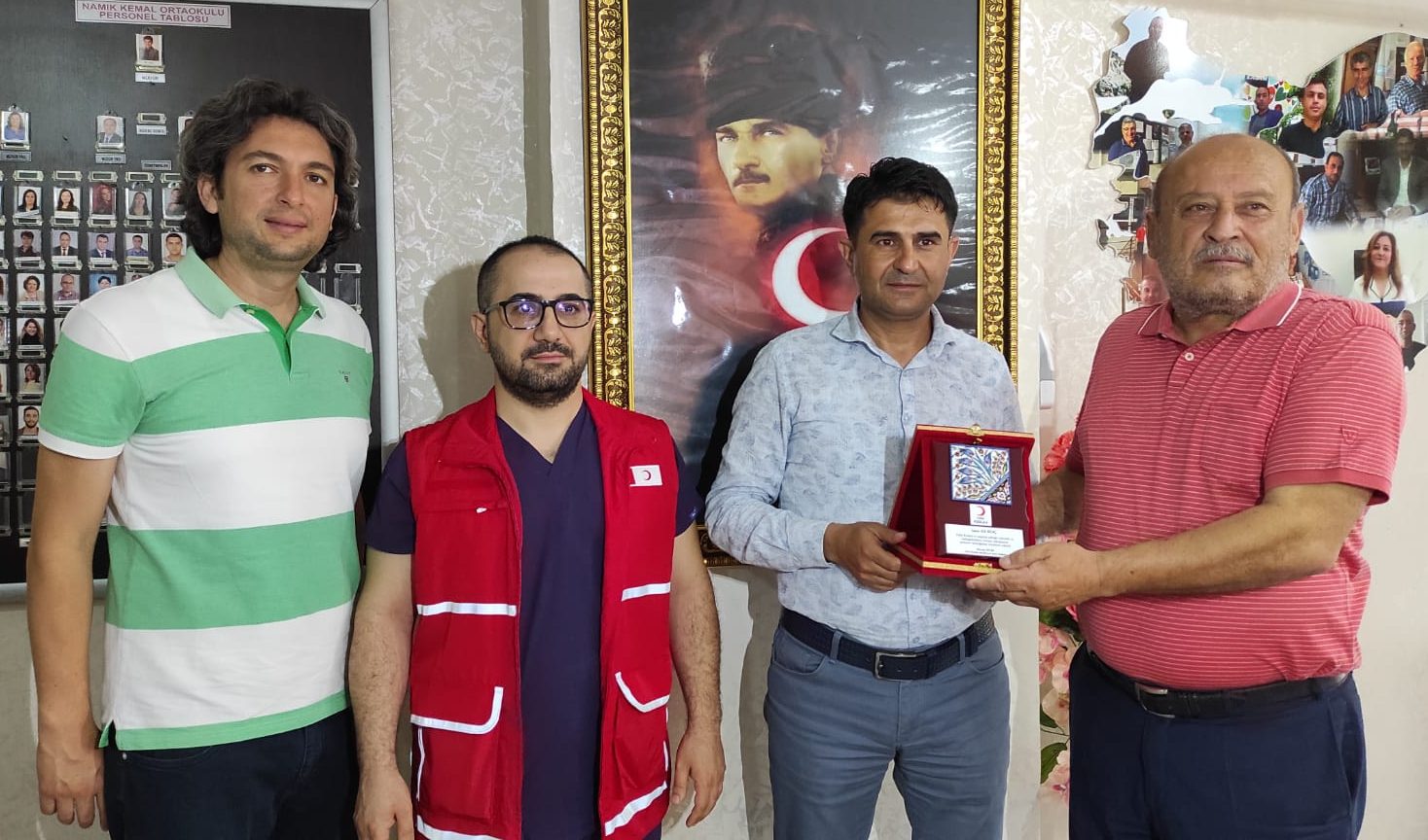 Kızılay Derneği İskenderun Şubesi ve Kızılay Kan Merkezi tarafından, 2021-2022 yılının son gününde, düzenlediği kampanyalar ile kan bağışına verdiği destekten ötürü Namık Kemal Ortaokulu Müdürü Ali Koç’a plaket takdim edildi.