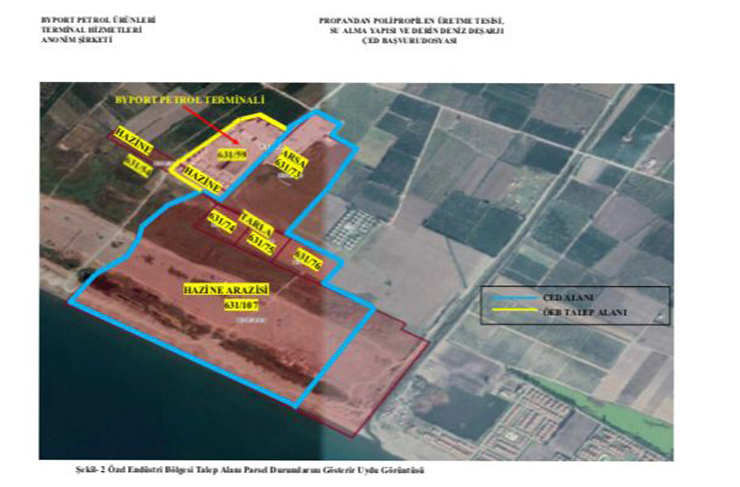İskenderun Çevre Koruma Derneği Başkanı ve Doğa Hakları-MYK Yardımcısı Nermin Yıldırım Kara, Çevre ve Şehircilik Bakanlığı sayfasında yer alan duyuruya göre; Hatay ili Erzin, ilce Aşağı Burnaz Mah. Gaziçiftliği (631 Ada (73, 74, 75, 76 ve 107 Nolu Parsel) mevkiinde Byport Petrol Ürünleri Terminal Hizmetleri Anonim Şirketi tarafından yapılması planlanan Propandan Polipropilen Üretme Tesisi, Su Alma Yapısı ve Derin Deniz Deşarjı projesinin ÇED Sürecinin başladığını duyurdu.