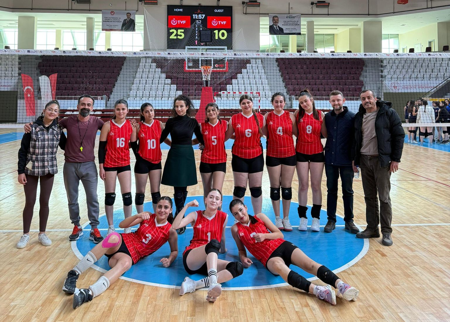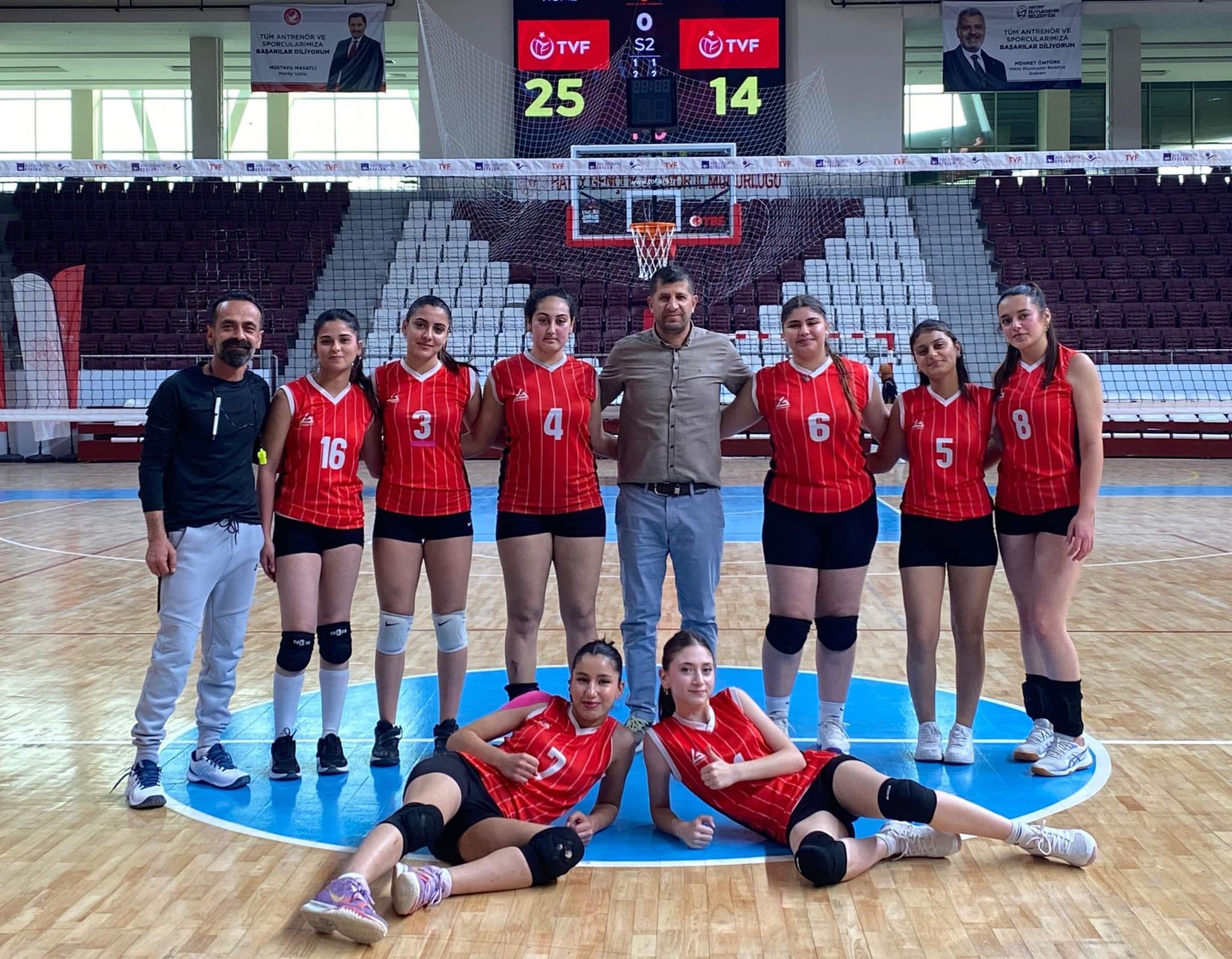 Samandağ Karaçay Bedi Sabuncu Lisesi Kız Voleybol Takımı oyuncuları, yarı final öncesi tüm sporseverleri tribün desteğine davet etti. (Haber Merkezi)