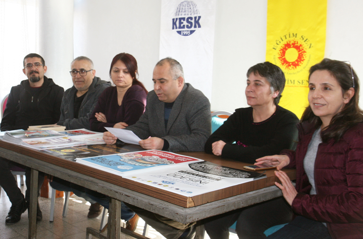 Eğitim-Sen İskenderun Şubesi yönetimi, ihraç edilen üye öğretmenlerin katılımıyla bir basın toplantısı düzenledi.