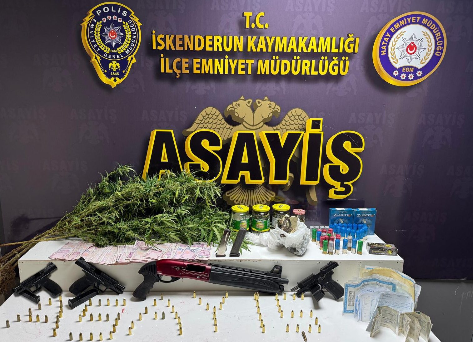 Operasyon sonunda; 3 adet tabanca, 1 adet pompalı tüfek, 123 adet 9.19 mm fişek, 30 adet tüfek fişeği, 7 kök kenevir, 5 kavanoz yaklaşık 70 gr. esrar ve 46.200 TL nakip para ele geçirildi.