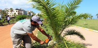 Park Bahçe Müdürlüğü Sahil Bandında Ağaç Budama Çalışması Yapıyor