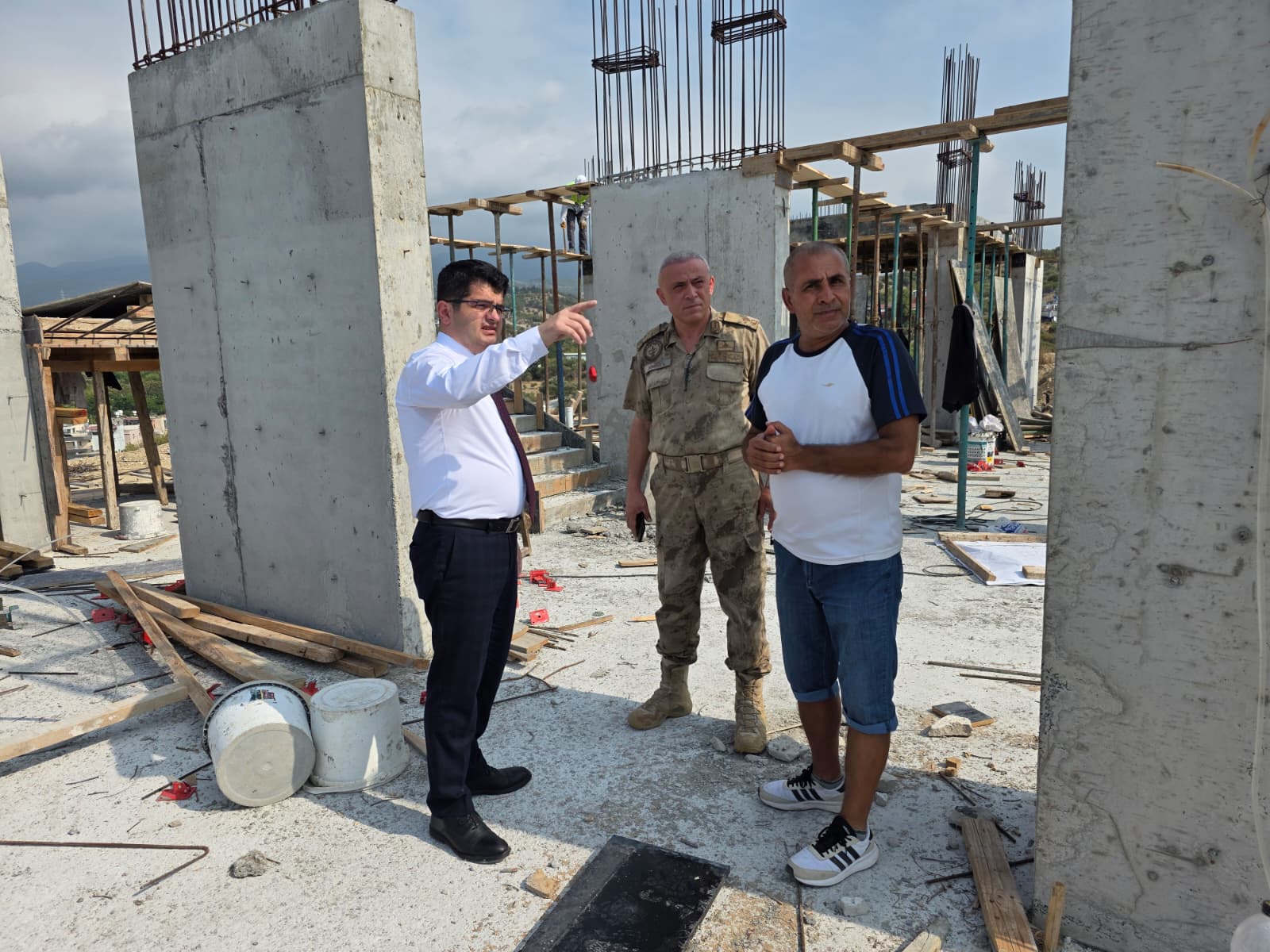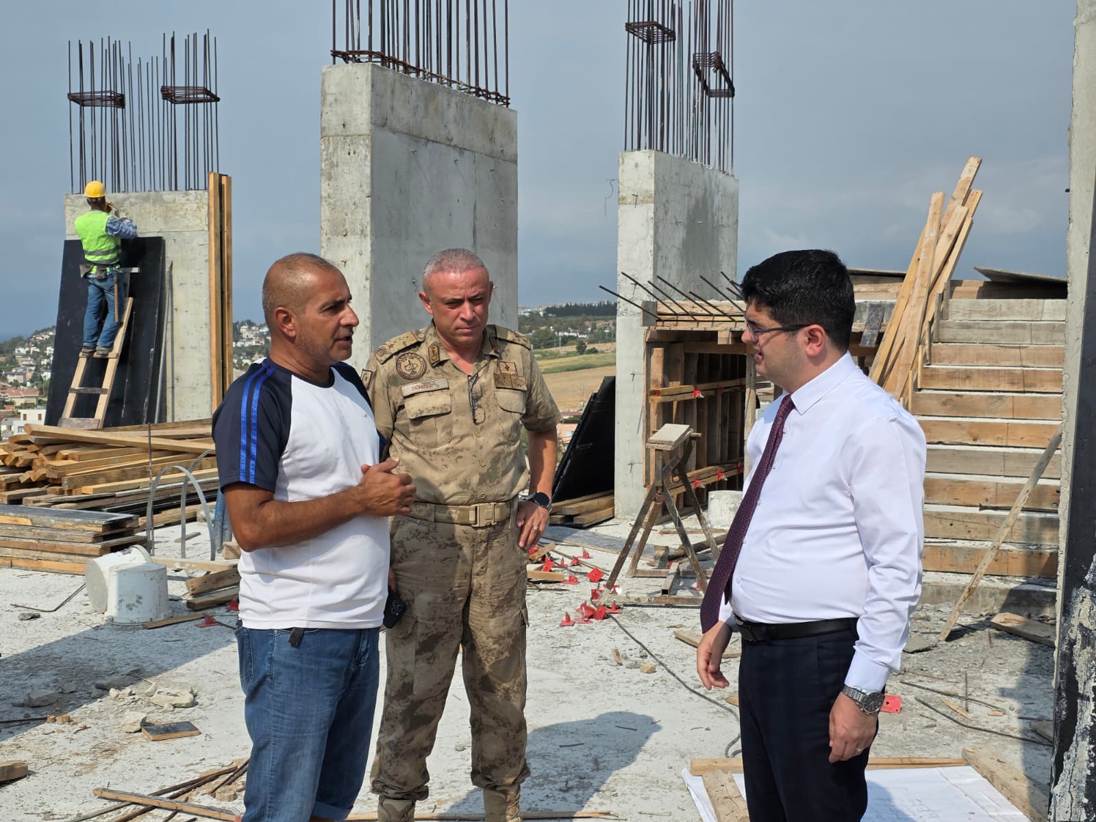 Arsuz Kaymakamı Fatih Eroğlu, Pirinçlik Mahallesi’nde yapımı devam eden Jandarma Karakolu inşaat alanında incelemelerde bulundu.