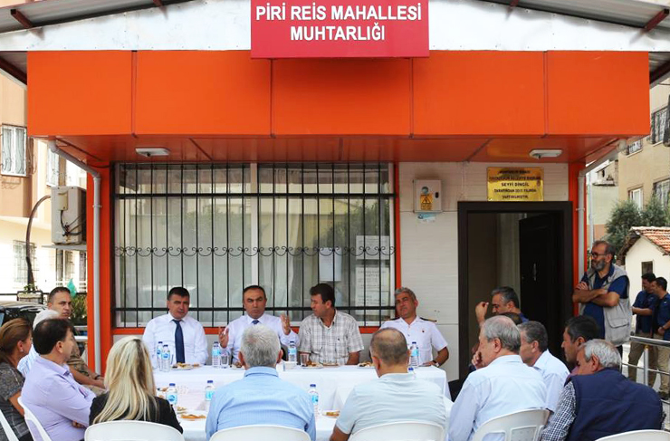 Sorun ve ihtiyaçlar üzerinde istişarede bulunularak çözüm odaklı çalışmaların yapıldığı toplantıya bu kez Piri Reis Mahallesi Muhtarı Sabit Dreyfioğlu ev sahipliği yaptı. Muhtarlık hizmet ofisinde ilgili/yetkili kurum yöneticileri ve çevre mahallelerin muhtarları ile bir araya gelen Kaymakam Recep Soytürk, mahallelerin genel durumu ile sorun ve ihtiyaçları hakkında değerlendirme yapmasının yanı sıra İlçemizin genel asayiş ve güvenlik durumu hakkında da istişare de bulundu.
