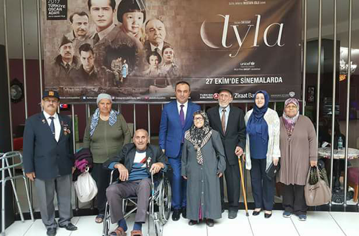 Kaymakam Soytürk’ün özel davetlisi olarak sinemada bir araya gelen Kore Gazilerimiz ve kıymetli eşleri, yönetmenliğini Can Ulkay’ın senaristliğini ise Yiğit Güralp’in gerçekleştirdiği, Türkiye ve Güney Kore ortak yapımı savaş filmi olarak 2017 yılı Ekim ayında vizyona giren “Ayla” filmini keyifle izledi.
