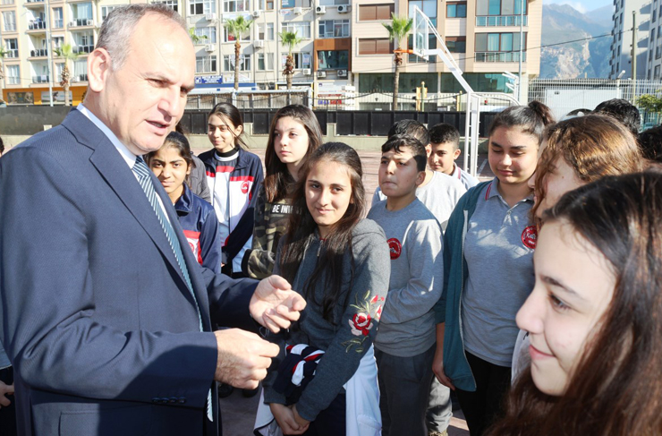 Okul girişinde öğrenciler tarafından yoğun ilgiyle karşılanan Kaymakam Yönden, öğrenciler ile bir süre sohbet etti.