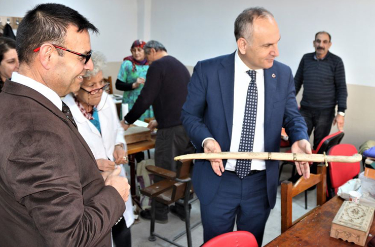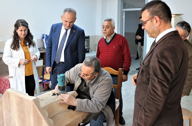 Kaymakam Yönden, Sedef İşlemeciliği, Ahşap İşletmeciliği, Resim, Cilt Bakımı, Kuaförlük v.b. çeşitli branşlarda eğitim verilen sınıfları ziyaret ederek, kursiyerlerce yapılan her biri birbirinden güzel çalışmaları dikkatle inceledi. (Haber Merkezi)