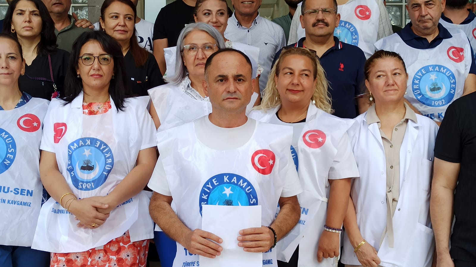 Toplu sözleşme görüşmelerinde sunulan zam teklifine tepki gösteren Türk Sağlık-Sen İskenderun İlçe Temsilciliği üyeleri, İskenderun Devlet Hastanesi B Blok önünde bir basın açıklaması yaptı.