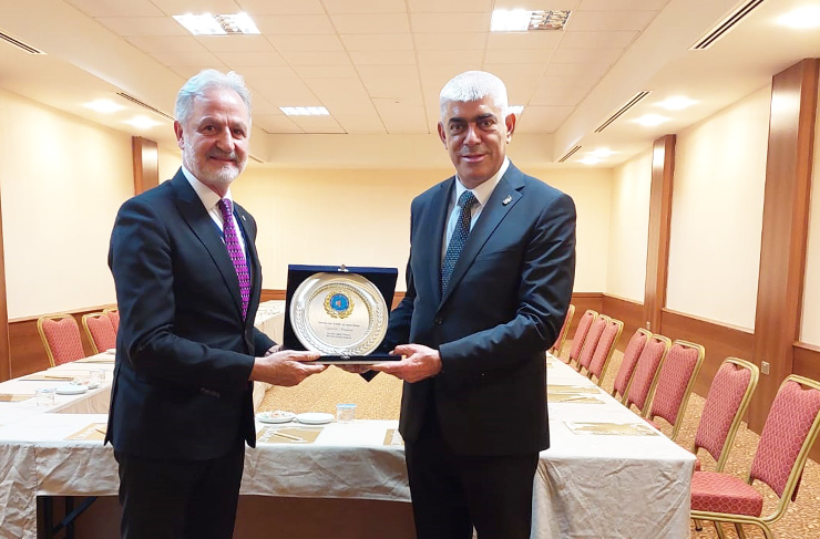 İTSO Başkanı Levent Hakkı Yılmaz da Kıbrıs Türk Sanayi Odası Başkanına günün anısına İTSO’nun plaketini takdim etti. (Haber Merkezi)