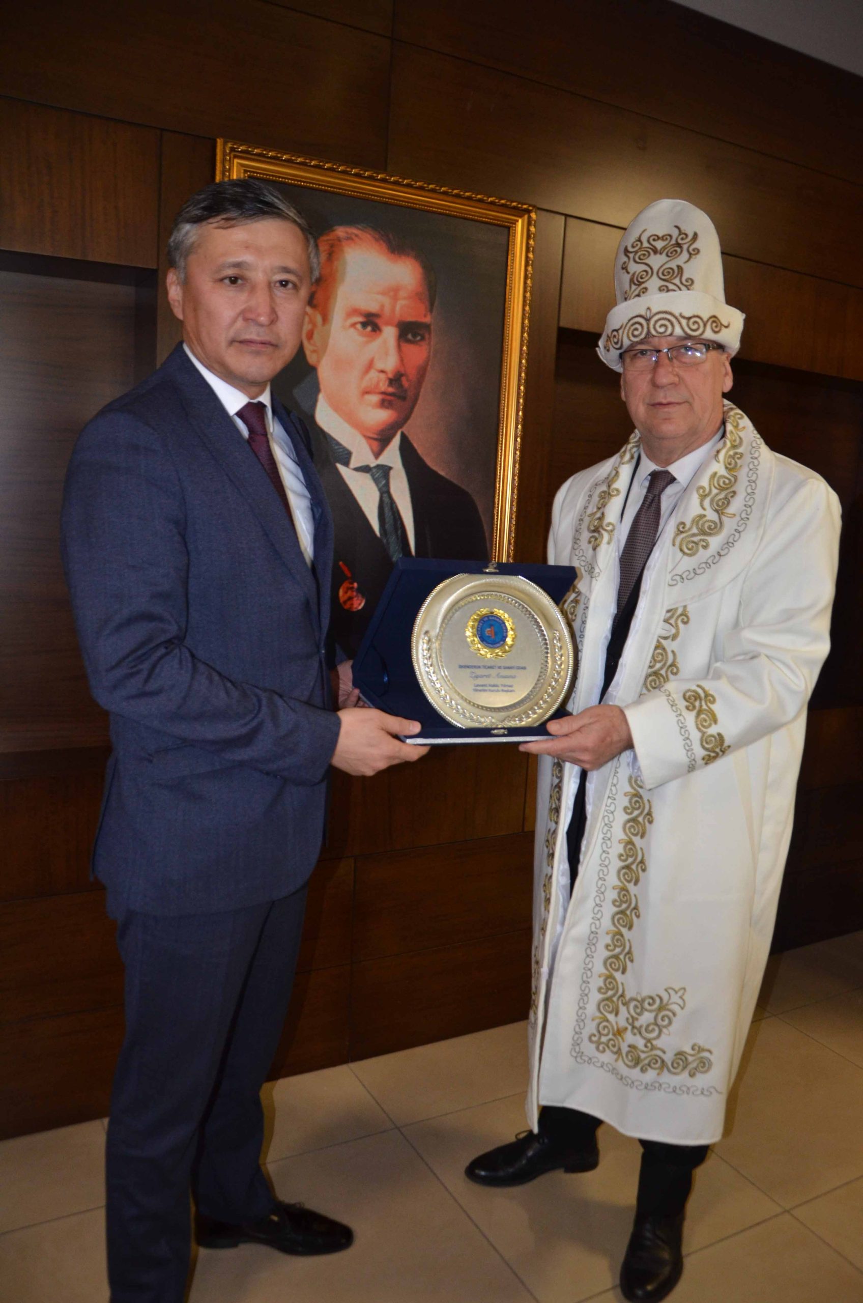 Ziyaret sonunda Kırgızistan Cumhuriyeti Parlamentosu Milletvekili Nurlan Azıgaliev, İTSO Başkan Yardımcısı Muhsin Yetere, Ülkesinin yöresel kıyafeti ve Kırgız kültürünü yansıtan hediyeler armağan ederken, İTSO Başkan Yardımcısı Muhsin Yeter’de Kırgız heyetine plaket takdim etti.