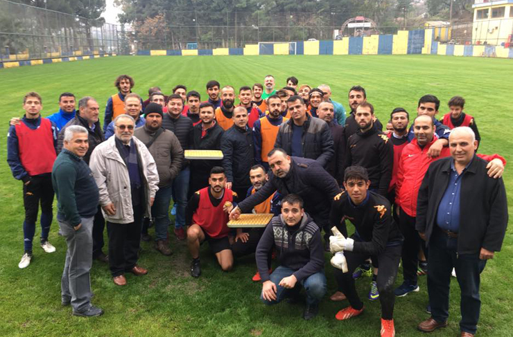 Antalya’da yapılan kamp çalışmalarının ardından ilçeye dönen Kırıkhanspor’un antrenmanları neşe içerisinde geçiyor. Hakan Çimen idaresinde tesislerde yapılan antrenmanı, Kulüp Başkanı Veli Özdoğan, yönetim kurulu üyeleri ve taraftarlarda izledi. Antrenman sonrası Kırıkhanspor’un yönetimi, teknik heyeti, futbolcular ve taraftarlar bir araya gelerek neşe içerisinde baklava yediler.