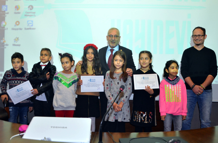 Kitap Otağı Yayınevinin 2. Kuruluş yıl dönümü ve Unutulmaya Yüz Tutan 100 Türk Büyüğü kitabının gala programında minik yazarlara teşekkür belgelerini İskenderun Belediye Başkanı Fatih Tosyalı ve Arsuz İlçe Milli Eğitim müdürü Ramazan Dönmez Takdim etti.