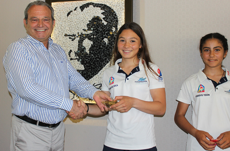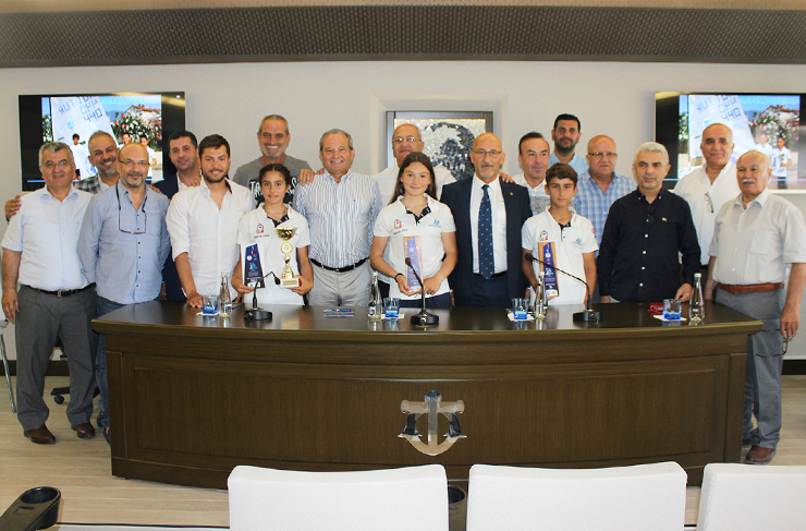 Şampiyonadan başarıyla dönen İskenderun Yelken Kulübünün Antrenörü ve sporcuları, İMEAK Deniz Ticaret Odası İskenderun Şubesi yönetimi kurulunu da ziyaret etti. Türkiye’de İskenderun’un adını duyuran ve başarı ile dönen sporcuları Meclis Başkanı Adnan Yener, Yönetimi Kurulu Başkanı Kemal Kutlu ve Yönetimi Kurulu üyeleri de tek-tek tebrik etti.