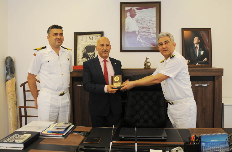 Komutanlar ile İMEAK Deniz Ticaret Odası İskenderun Şubesi Meclis Başkanı Adnan Yener Meclis Üyeleri Aykut Özdemir, Yusuf Uray, Dede Kahramanlı ve Yönetim Kurulu Üyesi Atilla Demirkent tarafından ağırlandı.