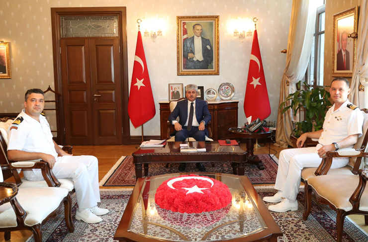 Hatay Valisi Rahmi Doğan, nezaket ziyaretleri kapsamında Sahil Güvenlik Akdeniz Bölge Komutanı Albay Oğuz Baybek ile İskenderun Grup Komutanı Kd. Binbaşı Oğuz Emre Çiçek’i makamında kabul etti. Kabulde Vali Doğan, ziyaretten duyduğu memnuniyeti dile getirdi. Albay Baybek ise kabulünden dolayı Vali Doğan’a teşekkür etti.