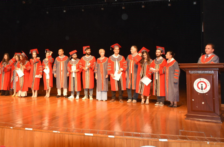 Mezun olduktan sonra siz de sanatınız ile ışık tutup önderlik ediniz. Sizlere imrendiğimi belirtmek isterim. Şimdi dört yıl boyunca tozunu yuttuğunuz, yeri gelip ağladığınız yeri geldiğinde güldüğünüz bu emek sahnesine, siz değerli mezunlarımızı kep atmak için davet etmek istiyorum” şeklinde seslendi ve sonrasında İSTE Mustafa Yazıcı Devlet Konservatuarı öğretim elemanları, öğrencilerine başarı belgelerini sahnede takdim etti.