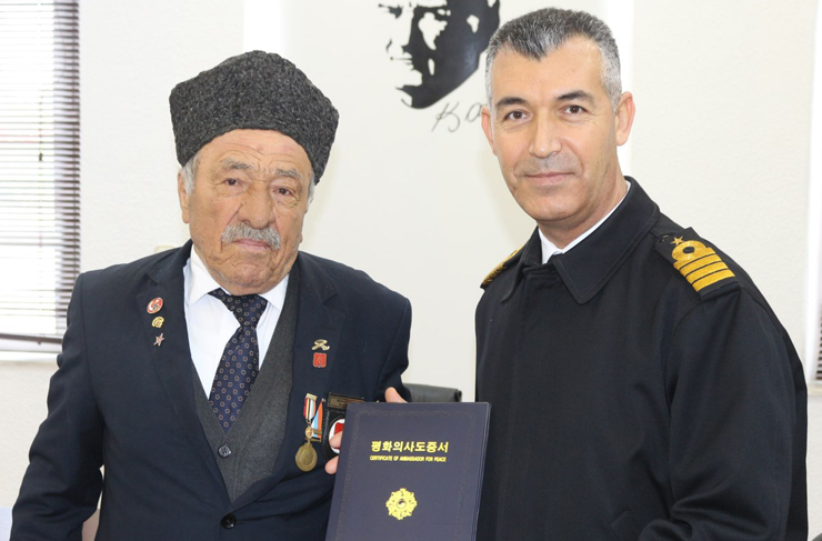 Kore Cumhuriyeti Muharip Gaziler Derneği tarafından, Türkiye Muharip Gaziler Derneği İskenderun Şubesi Üyesi Kore Gazisi Mehmet Şeker’e takdim edilmek üzere “Barış Büyükelçiliği Beratı” düzenlendi.