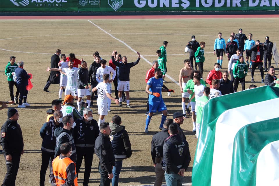 Alagöz Holding Iğdır Futbol Kulübü taraftarlarının tehditlerine boyun eğmek zorunda kalan Barkın Kara, Ali Kılıç ile Kaan Yıldızlar hakem üçlüsünün yönettiği karşılaşmada, Iğdır temsilcisinin gollerini 19. dakikada Okan Baydemir, 83. dakikada da penaltıdan Muhammet Reis atarken, İskenderunspor’un golünü de 62. dakikada Abdurrahman Kuyucu kaydetti. (Haber Merkezi)