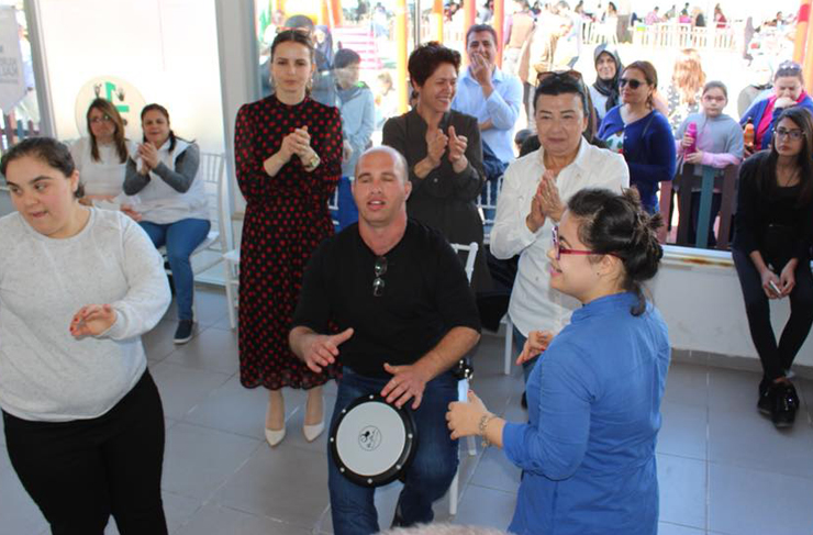 Down sendromlu çocukların topluma kazandırılması yönünde farkındalık oluşturmak adına düzenlenen etkinlikte anaokulu öğrencileri ve aileleri, darbuka eşliğinde danslar ederek eğlendiler.