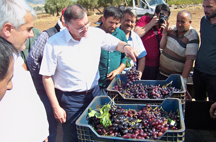 Hatay Büyük Şehir Belediye Başkanı Lütfü Savaş, Hassa’da üzüm üreticileriyle bir araya gelerek, üreticilerin sorunlarını dinledi.