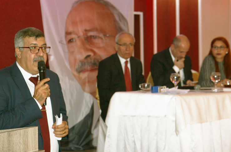 Bu kongremizi Türkiye siyasi gündeminin çok yoğun olduğu, hareketli olduğu bir dönemde yapıyoruz. Cumhuriyet Halk Partisi’ne AKP tarafından çok yoğun topyekün bir saldırının yapıldığı bir dönemden geçiyoruz. Cumhuriyet Halk Partililerin artık alarma geçmesi gerekiyor. Türkiye’de çarpık bir yapı var şu an. Recep Tayyip Erdoğan, AKP Genel Başkanı kimliği ile bizim Genel Başkanımıza ve partimize inanılmaz hakaretlerde bulunuyor. Kendisine cevap verdiğimizde ‘Ben cumhurbaşkanıyım sen bana cevap veremezsin’ diyor. Bu faşist bir yönetim. Sen istediğin gibi konuşacaksın ama sana cevap verdiğimiz zaman bu cumhurbaşkanına hakaret olarak kabul edilecek. Dünyanın hiçbir demokratik ülkesinde böyle çarpık bir sistem yok” şeklinde konuştu.