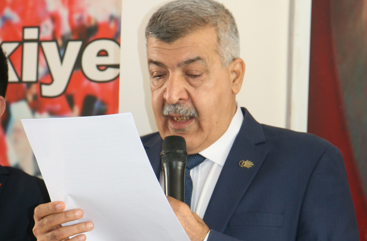Bir sözümüzde saraydan geçinen yavru muhalefet liderine, Akli melekesini yitirmiş ne dediğini bilmeyen, savaş çığırtkanlığı yapan sözde devlet adamı öğle namazına Moskova’da kılmaya, akşam namazını da Emevi Camisi’nde kılmaya çok hevesli olan beyefendinin elleri o kadar kirli ki sayın genel başkanımızın o tertemiz elini sıkmaktan utanıyor ve gerçekten ilk defa çok doğru bir iş yapıyor. Biz zaten o kirli elleri hiç sıkmak istemiyoruz. Biz genel başkanımız gibi dürüst, namuslu, ilkeli ve hayatının hiçbir aşamasında haram olmayan bir insanın elini sıkmaktan her zaman onur duyuyoruz, şeref duyuyoruz” dedi.