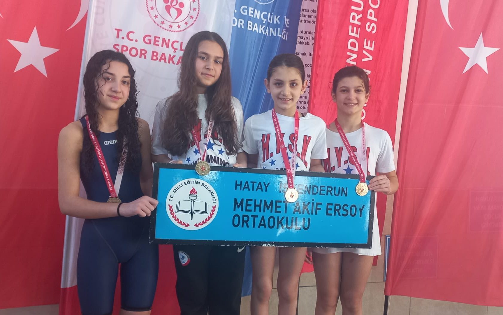 Mehmet Akif Ersoy Ortaokulu, spor alanındaki başarılarına bir yenisini daha ekledi. Okul tarihinde ilk kez oluşturulan Küçükler Kız Yüzme Takımı, Hatay Yüzme İl Birinciliği elde ederek okul camiasına büyük bir gurur yaşattı.