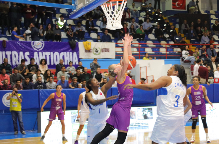Hatay Büyükşehir Belediyesi Kadın Basketbol Takımı, EuroLeague’in ikinci hafta karşılaşmasında Letonya temsilcisi TTT Riga’yı konuk etti. Mücadeleyi 74-77’lik skorla kaybeden Hatay’ın Melekleri, Avrupa arenasındaki ilk yenilgisini de almış oldu. Temsilcimiz ilk çeyreği 21-18 önde tamamladı. Mavi-Beyazlılar, Abdelkader’in son saniyede serbest atışlardan bulduğu sayılarla da soyunma odasına 41-39 önde girdi. Başa baş ve çekişmeli geçen üçüncü çeyrek de 57-54 temsilcimizin üstünlüğü ile tamamlandı. Son çeyrek ise adeta nefesleri kesti. Savunmada adam paylaşımını iyi yapan ve hücumda yakaladığı pozisyonları değerlendiren Letonya temsilcisi, karşılaşmayı 77-74 kazandı.