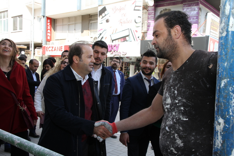 Enerjisi, samimiyeti ve güler yüzlülüğüyle gönüllerde taht kuran Şahutoğlu, esnaf ve vatandaşlarla tek tek tokalaştı. Esnaflara hayırlı kazançlar dileyen Şahutoğlu’nu sevgiyle karşılayan esnaflar ise; “Biz hocamızı biliyoruz. Sizinle her şey daha güzel olacak buna inanıyoruz. Sizinleyiz. Memleketin hali ortada, derman doktorda! Hatay hasta! Hatay’ı doktorlara emanet edeceğiz” diyerek destek sözü verdi.