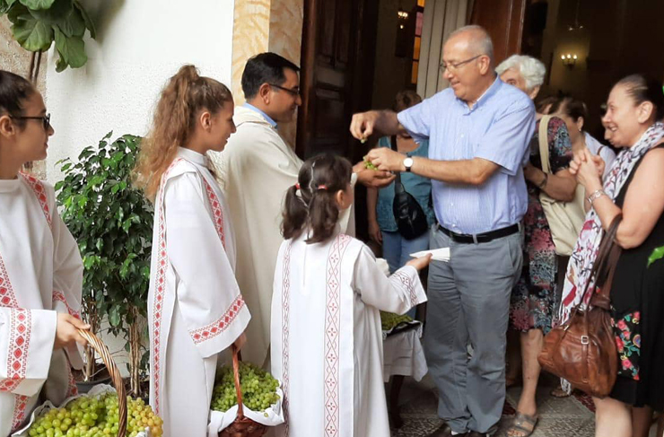 ‘Meryem Ana’nın Göğe Yükselişi Bayramı’ ayinlerinin sonunda geleneksel hale gelen bağbozumu üzümler kutsanırken, kutsanan bu üzümler, bolluk ve bereketin simgesi olarak cemaat üyelerine dağıtıldı. (Haber: İlyas Edip TERBİYELİ)