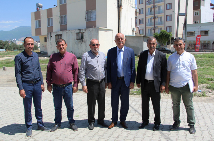 İskenderun Belediye Başkanı Seyfi Dingil, Meydan Mahallesine yapılacak olan taziye evinin yerinde incelemelerde bulundu.