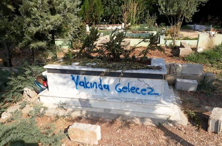 Reyhanlı’daki mezarlıkta bulunan çok sayıda mezar tahrip edilmiş, zarar verilen mezarların üzerine ‘Yakında geleceğiz. Biz İslam devletiyiz’ diye yazıların yazılması dikkat çekmişti. Gültepe Mahallesindeki asri mezarlıkta, 100’e yakın mezar taşı, kimliği belirsiz kişi ya da kişilerce kırılmış, emniyet olayla ilgili soruşturma başlatmıştı.
