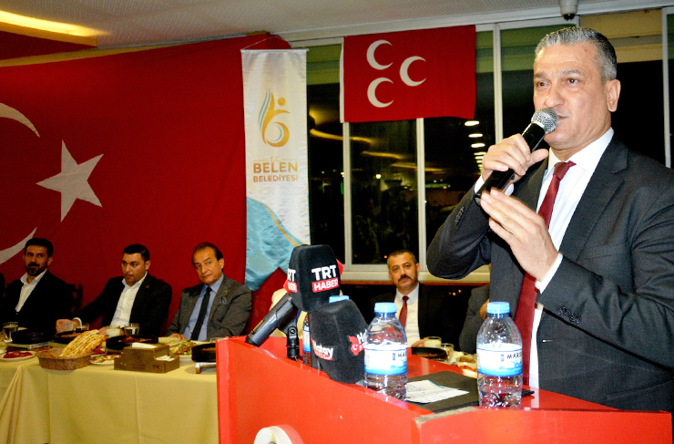 İlimize gelen MHP Heyeti, diğer ilçelerdeki ziyaretlerinin ardından Belen’deki geniş katılımlı akşam yemeğinde buluştu. Belen’deki programa; MHP Adana Milletvekili Muharrem Varlı, MHP Gaziantep Milletvekili A.Muhittin Taşdoğan, Hatay Milletvekili Lütfi Kaşıkçı, MYK Üyeleri Uğur Öztürk, Ali Fuat Kardaş, MHP Hatay İl Başkanı Murat Adal, MHP Kadın Kolları Başkanı Dilek Demirdöven, MHP Hatay Ülkü Ocakları Başkanı Alihan Döner, MHP İlçe Başkanları, Kadın Kolları ve yönetim kurulu üyeleri, mahalle muhtarları, meclis üyelerinin yanı sıra, çok sayıda davetli katıldı.