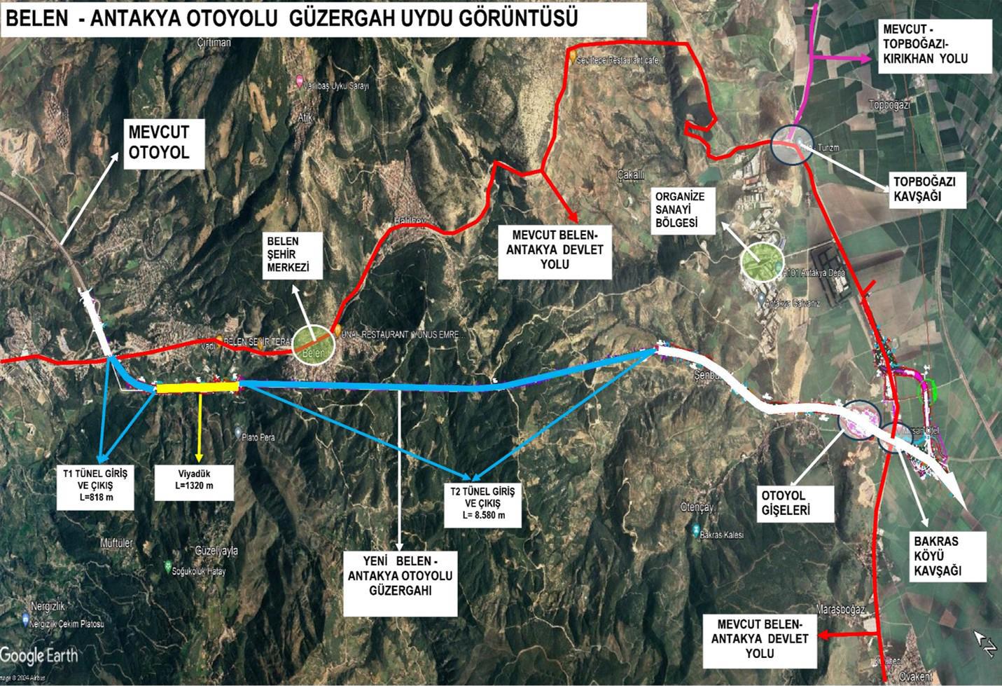 Bu inşaat kapsamında toplamda 17 kilometrelik bir yol inşaatı yapılacak. 17 kilometrelik 9200 metresi T1 ve T2 dediğimiz tünellerle geçilecek. 1500 metresi ise viyadükle geçilecek. Bu yol inşaatı tamamlandığında, faaliyete geçtiğinde 40-45 dakikada, trafik süresi hariç 45 dakikada gittiğimiz süreyi Hataylılar olarak 6 dakikada gitmiş olacağız ve buradan başlayan yol Maraş Boğazı’na kadar inecek.