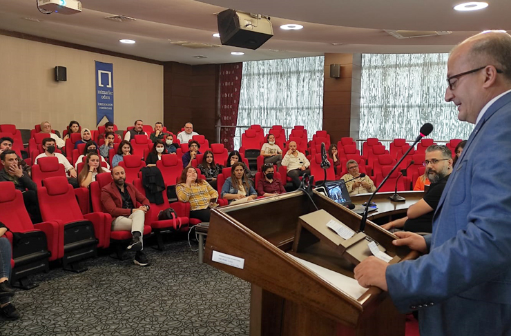 İstanbul Bilgi Üniversitesi Mühendislik ve Doğa Bilimler Fakültesi öğretim üyesi Mimar Ahmet Burçin Gürbüz tarafından verilen seminere, oda üyelerinin yanı sıra kentimizde görev yapan mimarlar ve mimarlık bölümünde eğitimlerine devam eden üniversite öğrencileri katılım gösterdi.