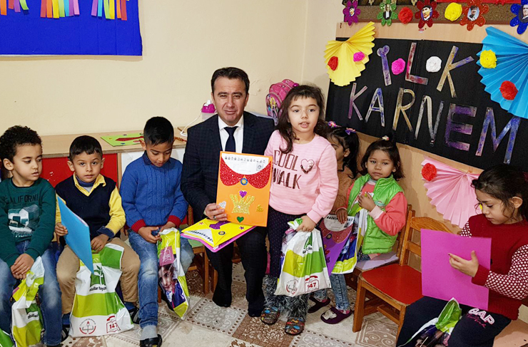 Öğrencilerle tek-tek ilgilenen İlçe Milli Eğitim Müdürü Tuğrul, onlarla sohbet etti ve bol-bol fotoğraf çektirdi. (Haber: Helga TERBİYELİ)