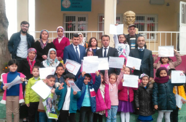 Törende konuşan Müdür Tuğrul, öğrencilere tatillerini iyi değerlendirmelerini tavsiye ederek; “Akarca mahallemizdeki küçük şirin okulumuz Akarca İlkokulumuzda velilerimiz ve öğrencilerimizle 2017/2018 eğitim öğretim yılı 1.dönem sonu karne heyecanına ortak oluyoruz.