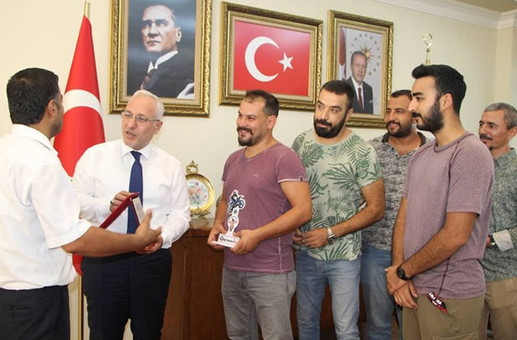İskenderun Belediye Başkanı Fatih Tosyalı, İskenderun Motosiklet Tutkunları Kulübü üyeleri ile bir araya geldi. Kulüp üyeleri Başkan Tosyalı’ya Tarsus’ta düzenlenen festivale verdiği katkılardan dolayı teşekkür plaketi verdi.