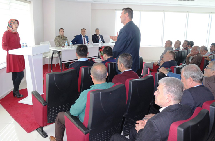 Muhtarlar ile kurum ve kuruluşların yetkililerinin katılımıyla gerçekleştirilen toplantıda, Mahalle Muhtarları tarafından ilçemizde yaşanan çeşitli sorun ve eksiklikler (Elektrik, Yol Yapımı, Suriyeli Vatandaşların İşlemleri, Trafik Sorunları, Eğitim v.b.) dile getirilerek, çözüm odaklı görüşme yapıldı.