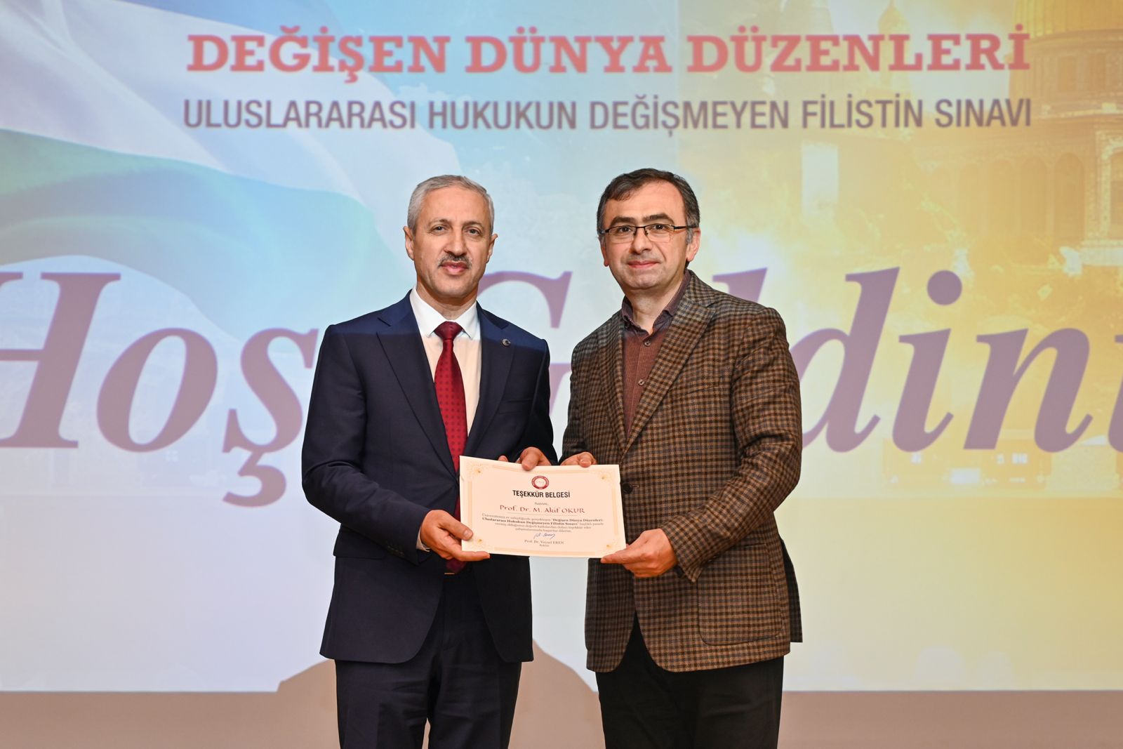 Uluslararası sistemin bu ihlaller karşısındaki sessizliğine de dikkat çeken Rektör Eren, cezasızlık kültürünün tehlikesine vurgu yaparak; “Cezasızlık bir sonuç değil, bir mesajdır. Her türlü kural tanımazlığa, her türlü acımasız soykırıma devam edebilirsiniz mesajının bir yansımasıdır. Bugün Filistin meselesi bu yönüyle uluslararası düzenin samimiyet testidir. Eğer bir sistem en açık ihlaller karşısında dahi etkili bir tepki üretemiyorsa o sistemin evrensel hukuk iddiası ciddi biçimde sorgulanır” dedi.