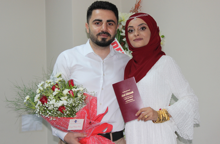Bayraktar ve Sarıca ailelerinin yoğun katılım gösterdiği nikâh merasiminde, genç çiftin heyecanı dikkatlerden kaçmazken, mutlulukları ise görülmeye değerdi.