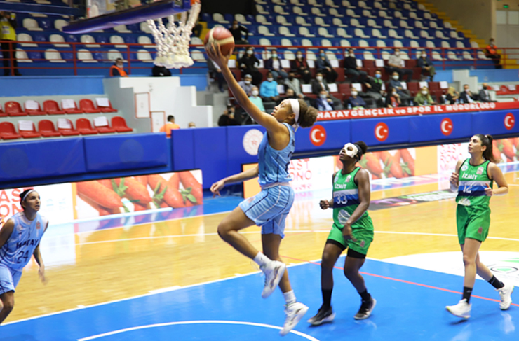 Herbalife Nutrition Kadınlar Basketbol Liginde mücadele eden Hatay Büyükşehir Belediyesi Kadın Basketbol Takımı, 8. hafta mücadelesinde İzmit Belediyespor ile karşı karşıya geldi. Antakya Spor Salonunda dün oynanan mücadeleye Derin, Gizem, Alexis Prince, Hind Ben Abdelkader ve Gueye ilk beşiyle başlayan Mavi-Beyazlılar, ilk çeyreği 21-11 geride tamamladı. Hatay’ın Melekleri ikinci çeyrekte pota altından bulduğu sayılarla etkili olmaya çalıştı ancak yüksek tempoda geçen ikinci çeyrek, konuk takım İzmit Belediyespor’un 38-31 üstünlüğü ile tamamlandı.