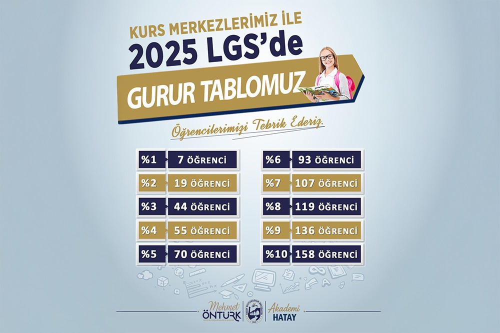 “Hatay’ın Evlatlarına Değer” anlayışıyla yürüttükleri eğitim desteği programları kapsamındaki LGS kurslarında sınava hazırlanan 808 öğrencinin Türkiye’de %10’luk dilime girme başarısı gösterdiğini kaydeden İnsan Kaynakları ve Eğitim Dairesi yetkilileri, tüm öğrencilerini tebrik ederek gurur duyduklarını ifade ettiler. (Haber Merkezi)