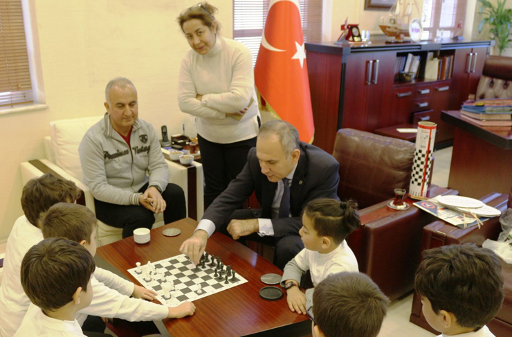 İskenderun Ticaret ve Sanayi Odası İlkokulu Sınıf Öğretmeni ve Satranç Eğitimcisi Nilüfer Budak ile Sedat Özdemir eşliğinde İlçemiz Kaymakamı İskender Yönden’i ziyaret eden 2.sınıf öğrencileri, satranç konusunda öğrendikleri tüm hünerleri Kaymakam Yönden’e karşı sergilese de oyunun galibi sevgi ve dostluk oldu.